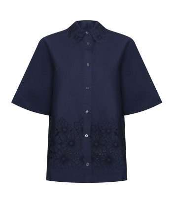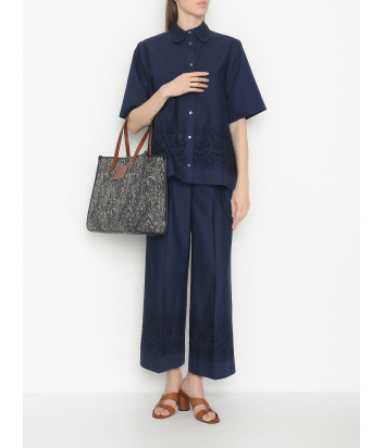 Блуза з хлопка P.A.R.O.S.H. Christel D381145 з перфорацією синя